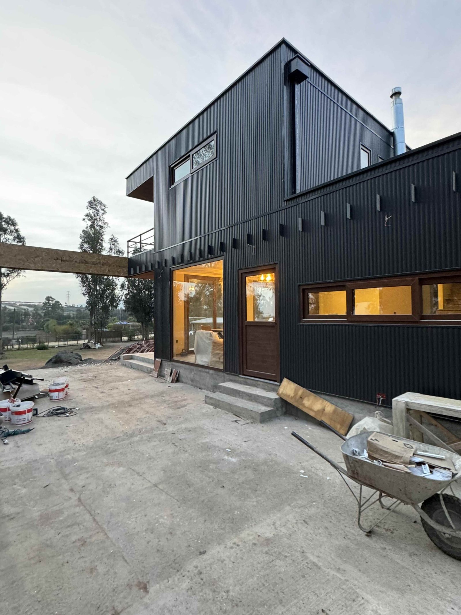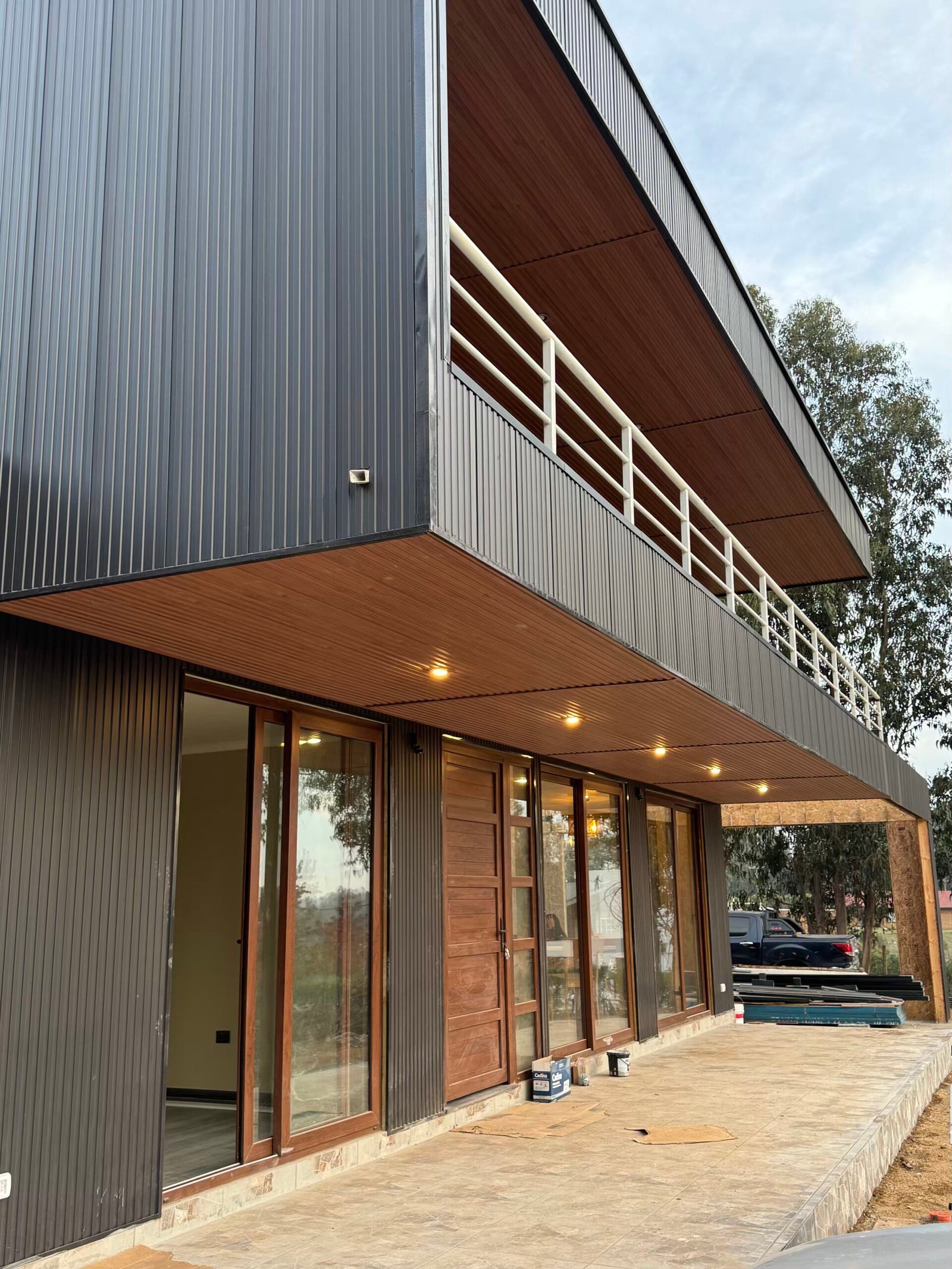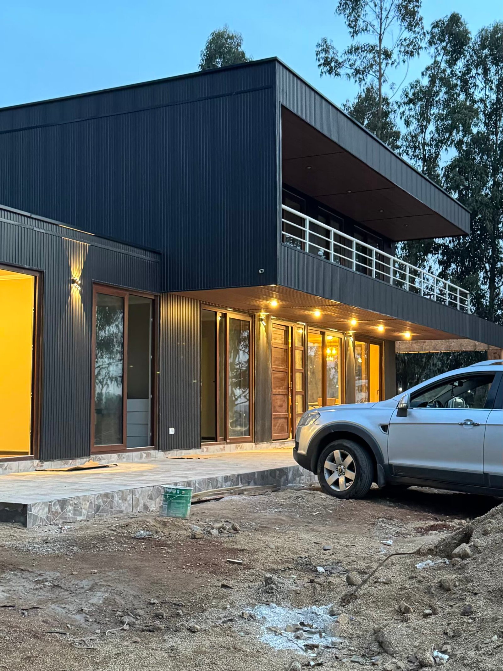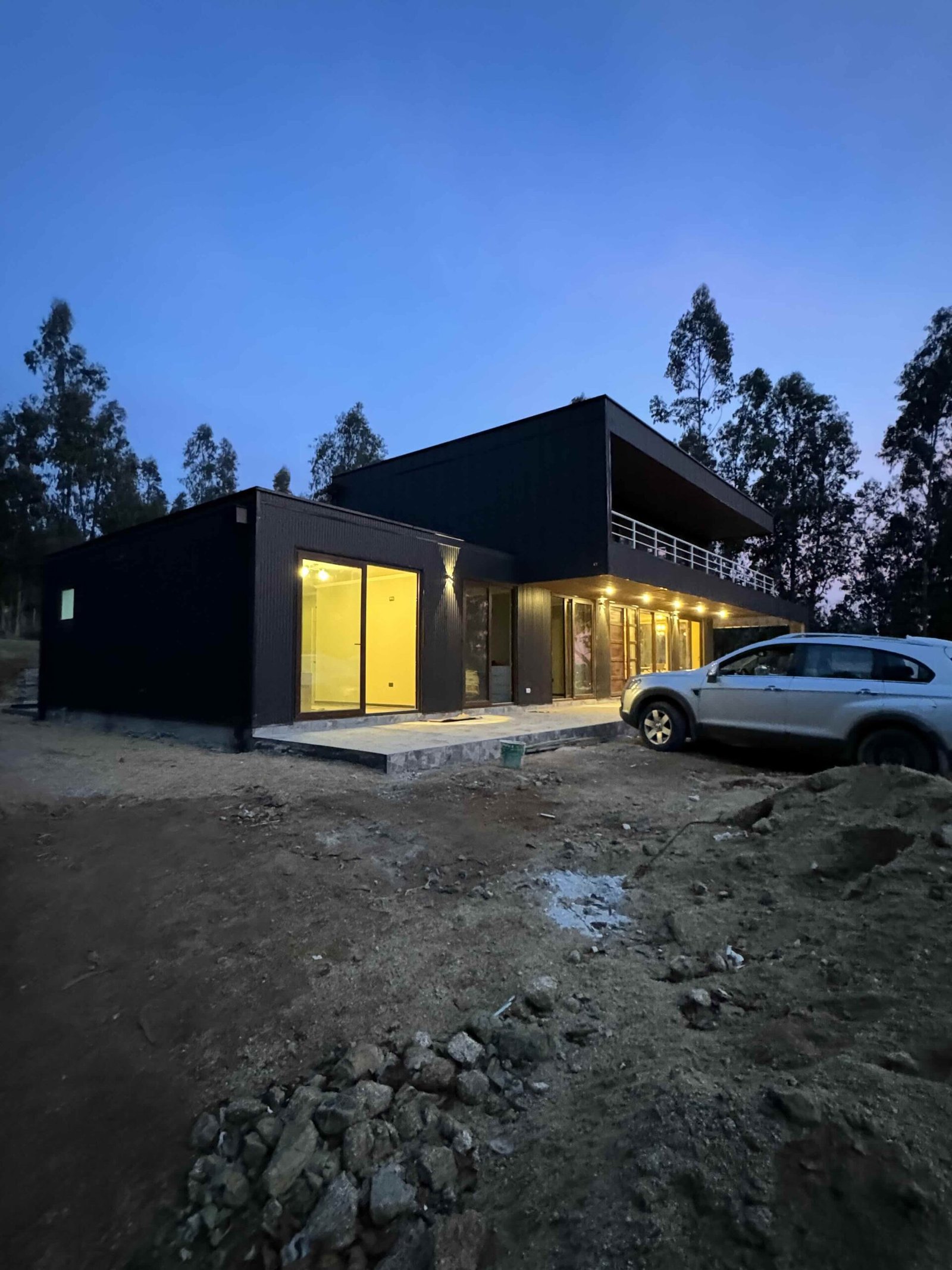 Vivienda unifamiliar de 270 m², ubicada en un condominio privado en Leyda, sobre un terreno de 5,000 m². Diseñada en dos niveles, su arquitectura maximiza las vistas naturales a través de amplios ventanales termopanel, proporcionando luminosidad y conexión con el entorno. La construcción se realizó con paneles SIP de alta calidad, garantizando solidez estructural y un óptimo control térmico para un ambiente interior confortable y eficiente.